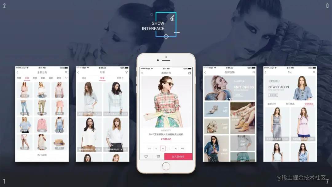 第一案例,它是一个服饰类电商APP,可以看到有商品分类页面,商品详情页,品牌促销页等等。包括哪些按钮是用户交互行为的,哪些是纯展示的。这些都是产品设计者前期做好的页面设计和布局。