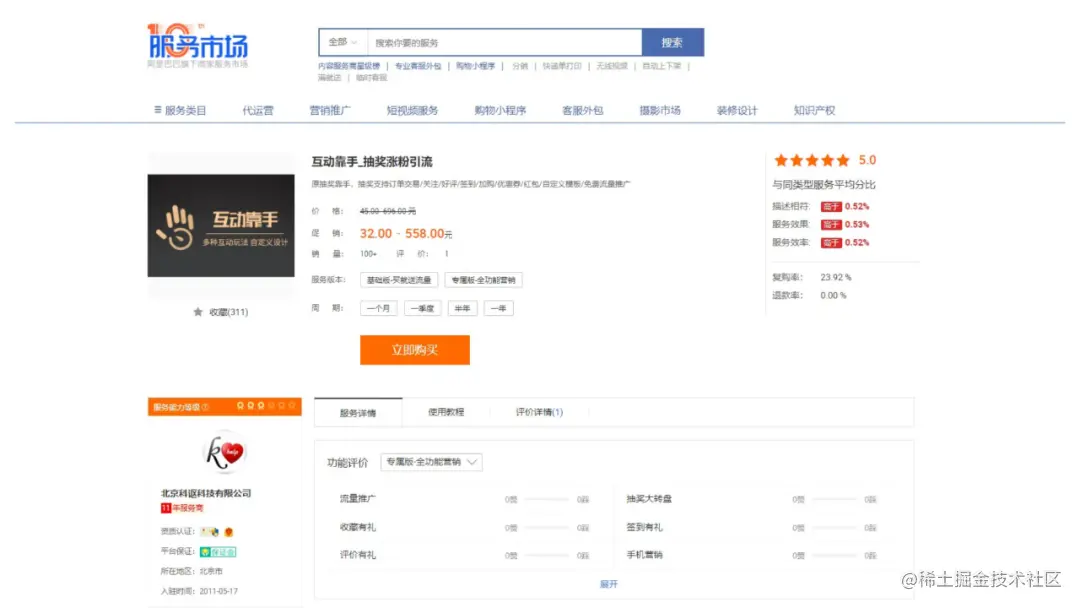 这个案例是商家服务市场的互动工具,工具可以让商家付费订购。我们可以看到页面包含了产品名称,订购费用,评分等等,这里没有展示的页面下面还有产品的详情页展示,主要介绍了产品的功能。