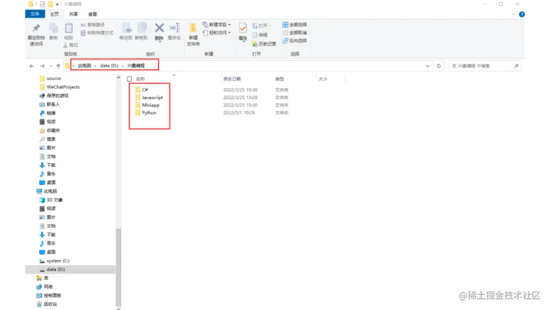比如在你的工作盘中,创建你规划的文件夹,取名兴趣编程,这个文件夹里面在创建你网站名称的文件夹,或者编程语言文件夹,后续把编写的代码放入其中,规划好目录结构,好的目录结构便于以后高效的编程开发。