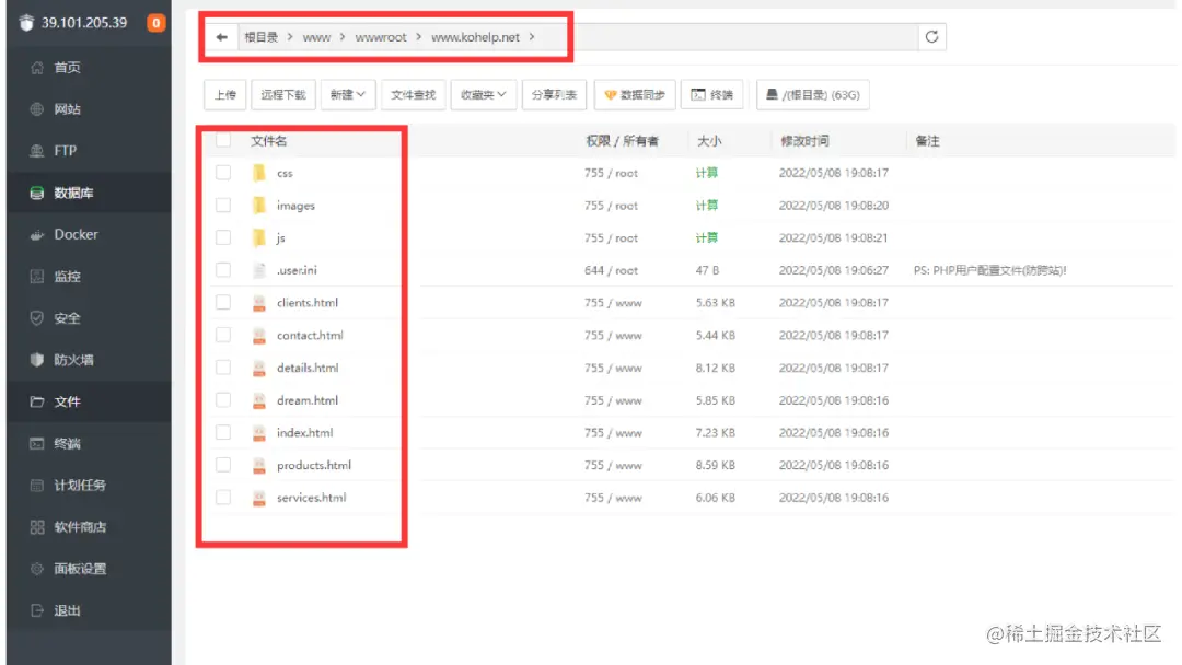 它会跳转到服务器的这个网站目录下,这里传入了我的静态网站代码文件。这样一个网站的部署就算大功告成了。