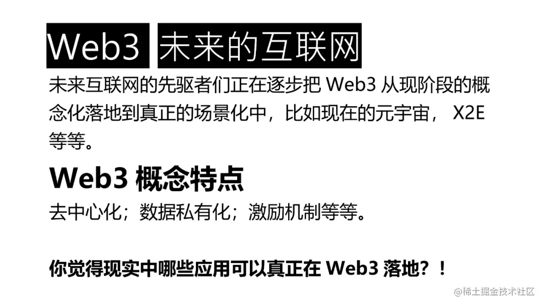 Web3概念特点去中心化;数据私有化;激励机制等等。