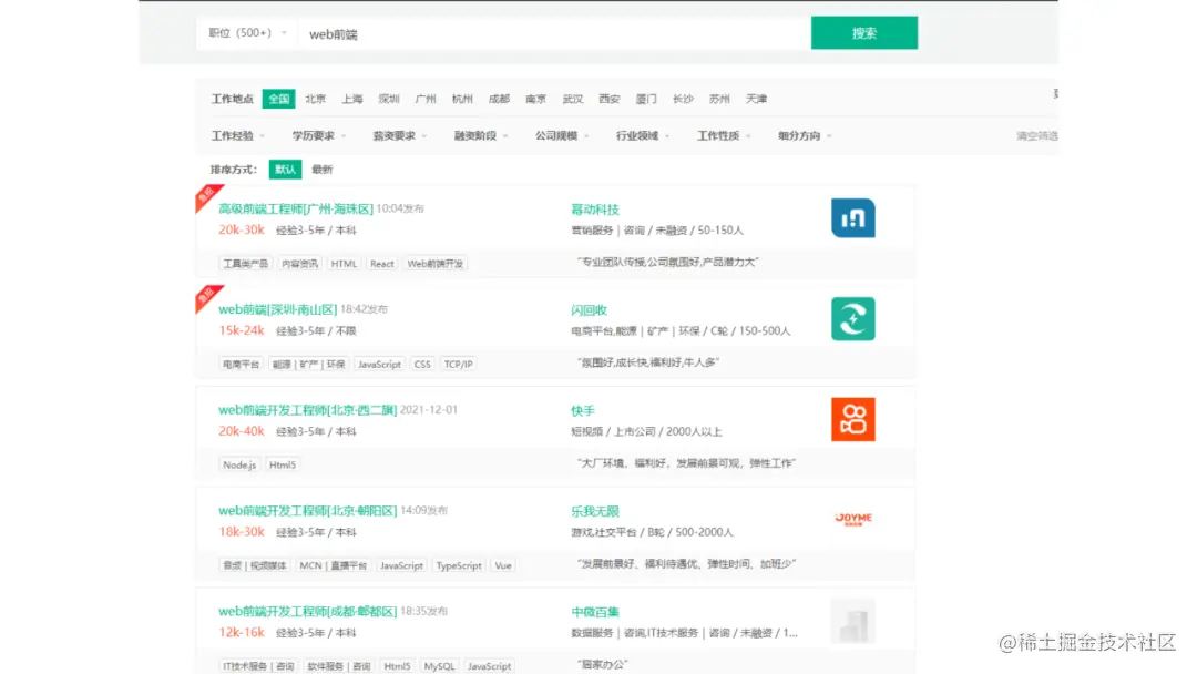 从某招聘网站上看了下web开发就业职位,还是很多的,薪资也不错。