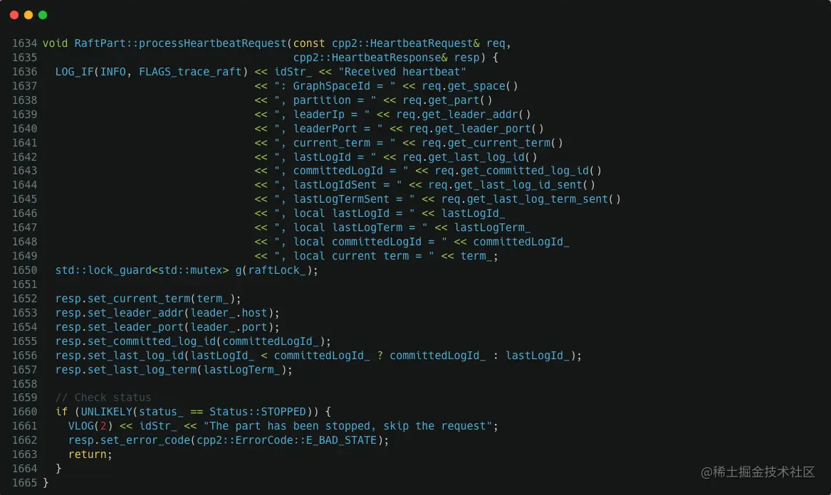 #6 0x0000000003da1de2 in nebula::raftex::RaftPart::processHeartbeatRequest (this=0x7fc8c54df010, req=..., resp=...) at /root/nebula-workspace/nebula/src/kvstore/raftex/RaftPart.cpp:1650