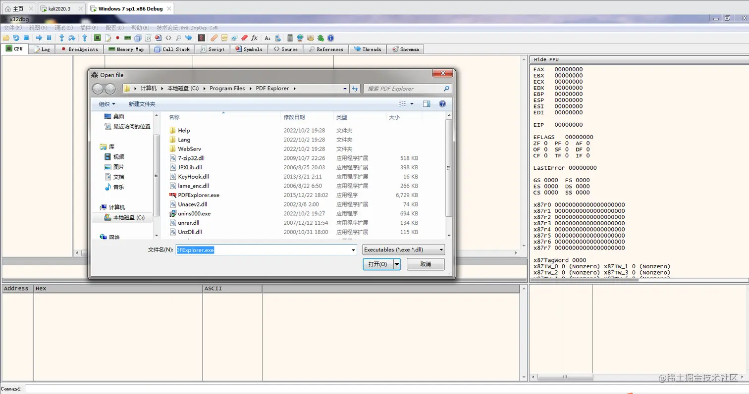 | win7x86 | PDF Explorer | x32dbg、OD |