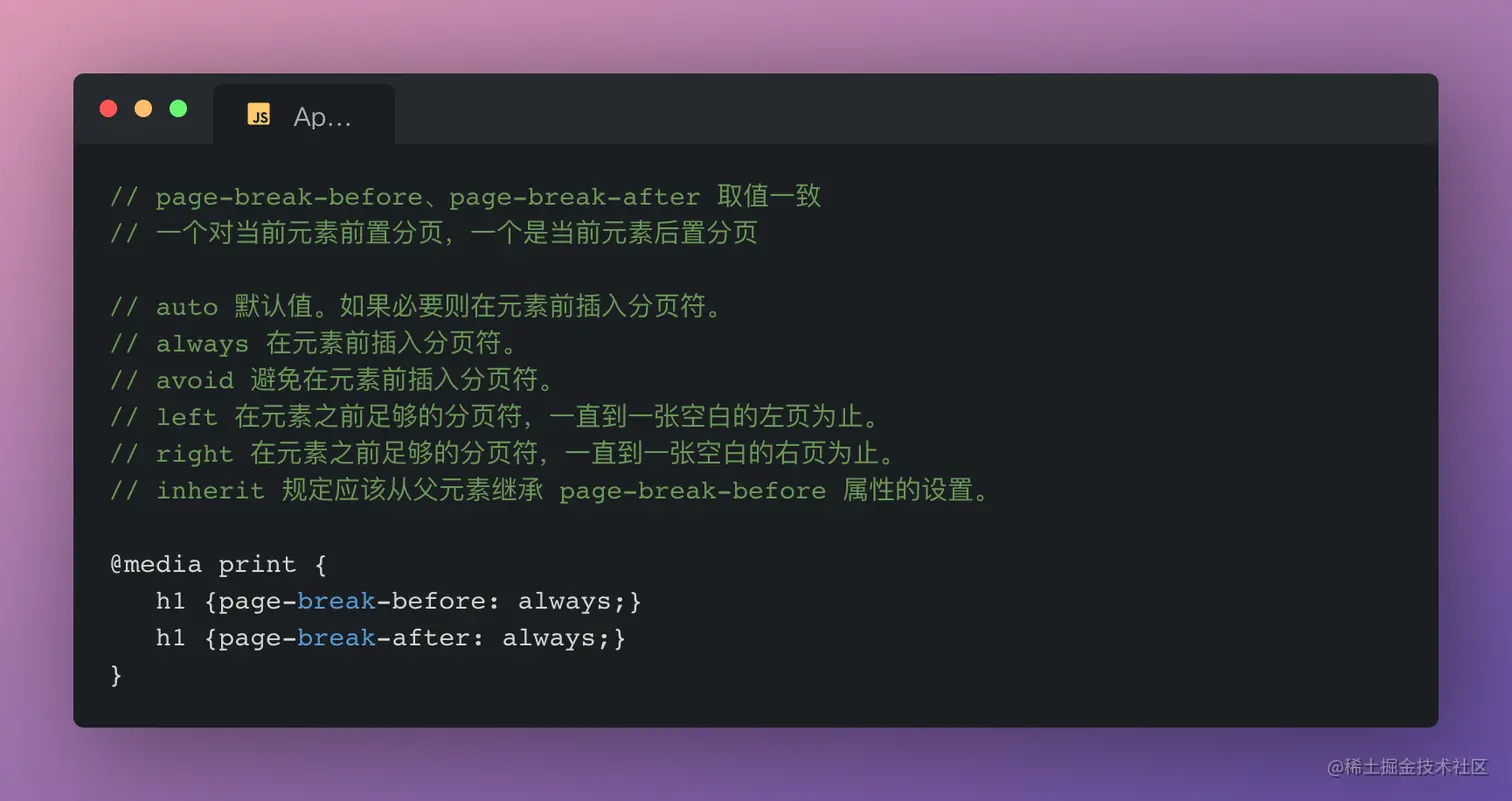 ⚠️:不能对绝对定位的元素使用此属性。尽可能少的使用分页属性,并且避免在表格、浮动元素、带有边框的块元素中使用分页属性