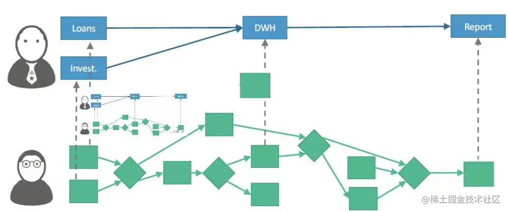 目前的数据血缘大多是基于技术的梳理,一般服务技术人员的需求。随着数据服务走向前台,服务业务分析和CDO的业务数据血缘,目前已经有相关产品,通过数据的语义分析,将技术元数据映射到业务元数据上,将血缘以业务流程方式发布共享出来,辅助商务决策,这是未来的发展方向之一。
