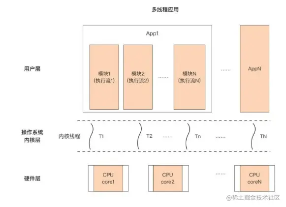 进程是操作系统层面的内容,它可以支持操作系统同时运行多个程序应用。但当执行的程序是个庞大的应用时,我们能不能继续发挥并发的优势,提高运行效率呢?