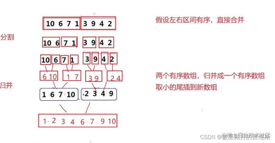 7.2归并排序递归改非递归的代码实现: