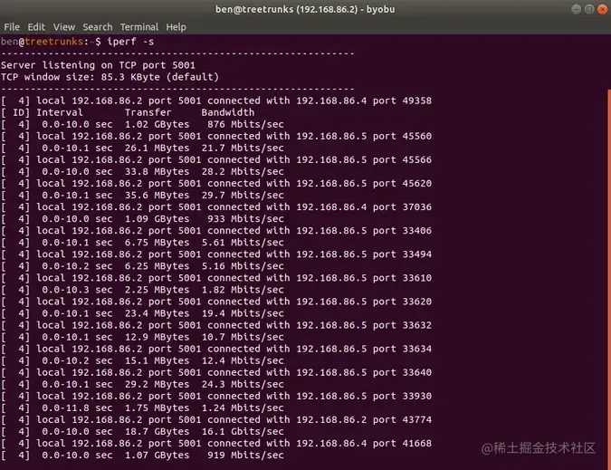 在服务端启动 iperf: