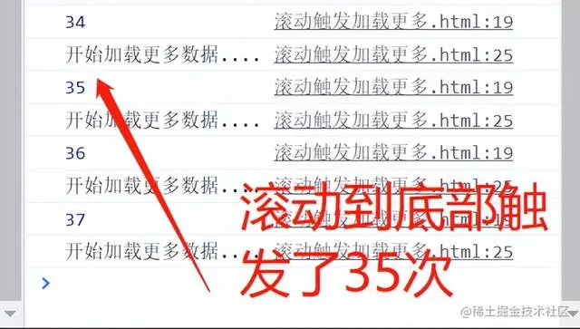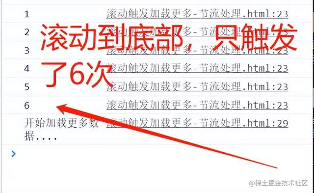 同样的布局,同样的效果,在未做节流处理和做了节流处理,两者效果上有很大的差异。从头部滚动到底部触发加载更多,未做节流处理,共触发了35次代码的执行,而做了节流处理的,只触发了6次代码的执行。