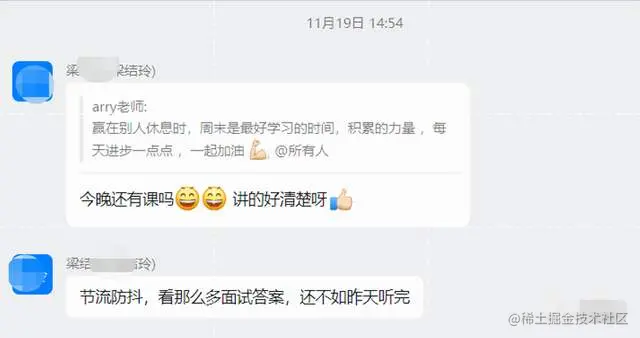 为了更好的帮助大家理解防抖与节流,我们特意从我们的系统班(星辰班)中节选了两节课详细的讲解!放在钉钉群直播回放里面,大家可以看完这个文章之后,可以通过最底部的微信二维码添加助理老师,加入三十天计划群里学习!(如果你已经添加了助理老师,那还等什么,赶紧去问问老师,加入交流群学习吧!)