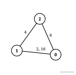 解释: 上图为给定的输入数据。注意到 0 和 1 之间有两条重边,分别为 2 和 16 。