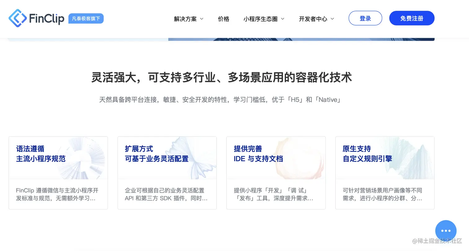 Finclip小程序开放平台,为企业提供“小程序运行能力”,它作为小程序运行的环境,为小程序提供安全沙箱、代码解析和渲染等服务。 为了让更多 APP 轻松拥有“小程序运行能力”。凡泰极客将“小程序运行时”实现成一个可私有化部署的 iOS 和 Android 版本的 SDK,可以被第三方集成。也就是说,任何 APP 通过嵌入FinClip小程序SDK即可瞬间获得运行小程序的能力。