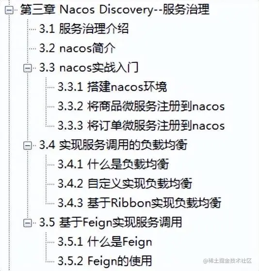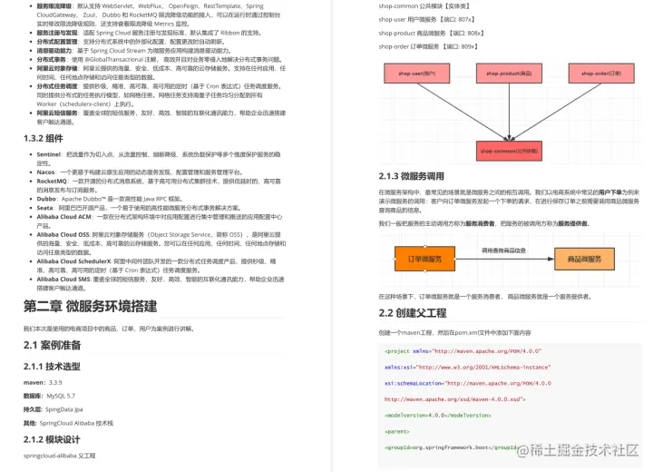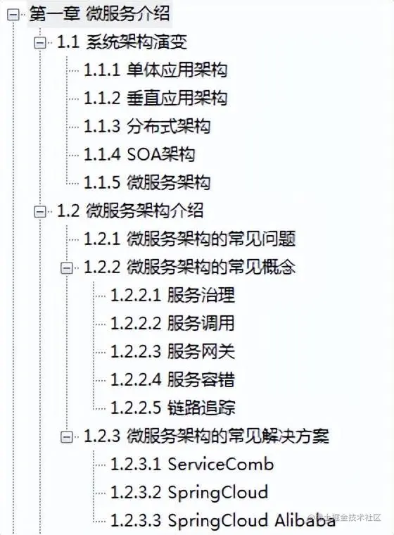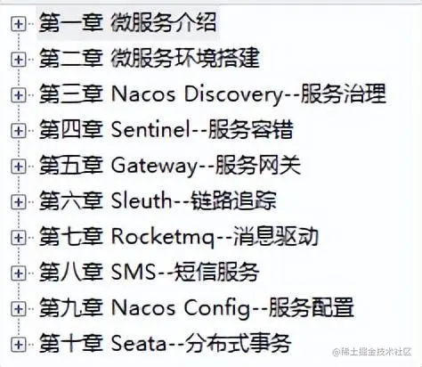 除第一章微服务介绍和第二章微服务环境搭建外,其他章节皆为Spring Cloud Alibaba相关组件的介绍及使用,下面将具体内容展示出来: