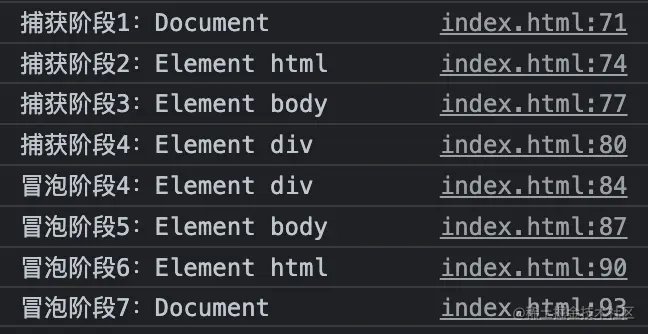 很明显,上面的代码验证了网页的事件触发会存在DOM2事件流这一执行过程。我们点击了事件,这个事件经历了由捕获阶段再到冒泡阶段的传递。