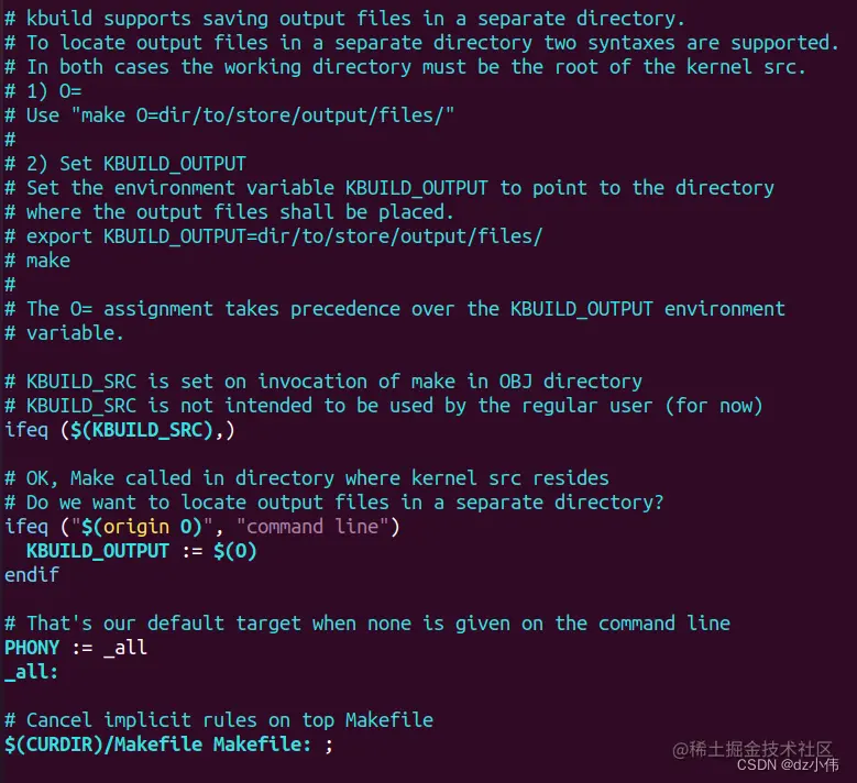 - OBJTREE:编译出的.o文件存放的目录的根目录。在默认编译下,OBJTREE等于当前目录;在O=xx编译下,OBJTREE就等于我们设置的那个输出目录。
