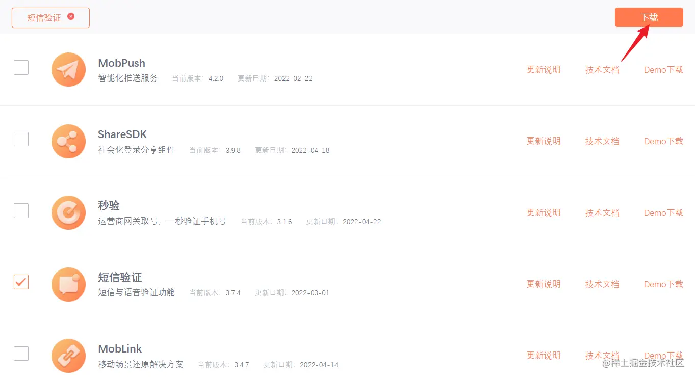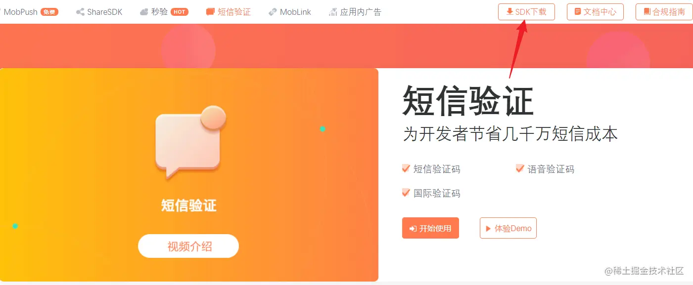 进入开发者模式后,对应以下几个选项模块(以短信验证模块为例),点击开始使用