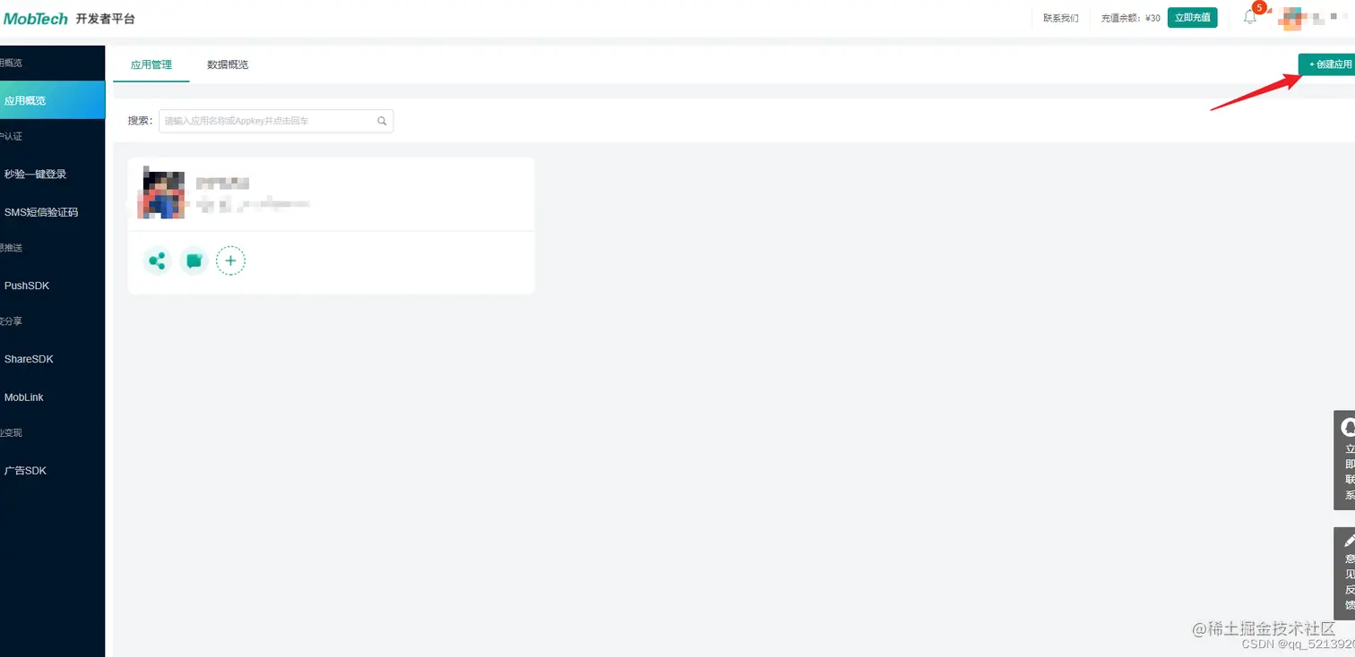 跳转到个人开发平台后点击创建应用,并输入相关信息