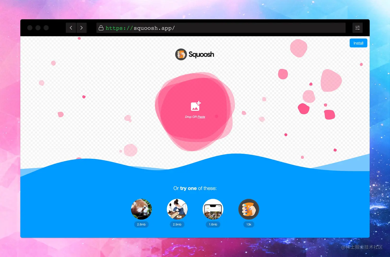 Squoosh.app 是一款在线图片压缩工具。它简单易用,而且压缩出来的图片效果,让你网页速度更快的同时保证了浏览体验。它还是开源的,而且提供了 CLI 和浏览器插件。