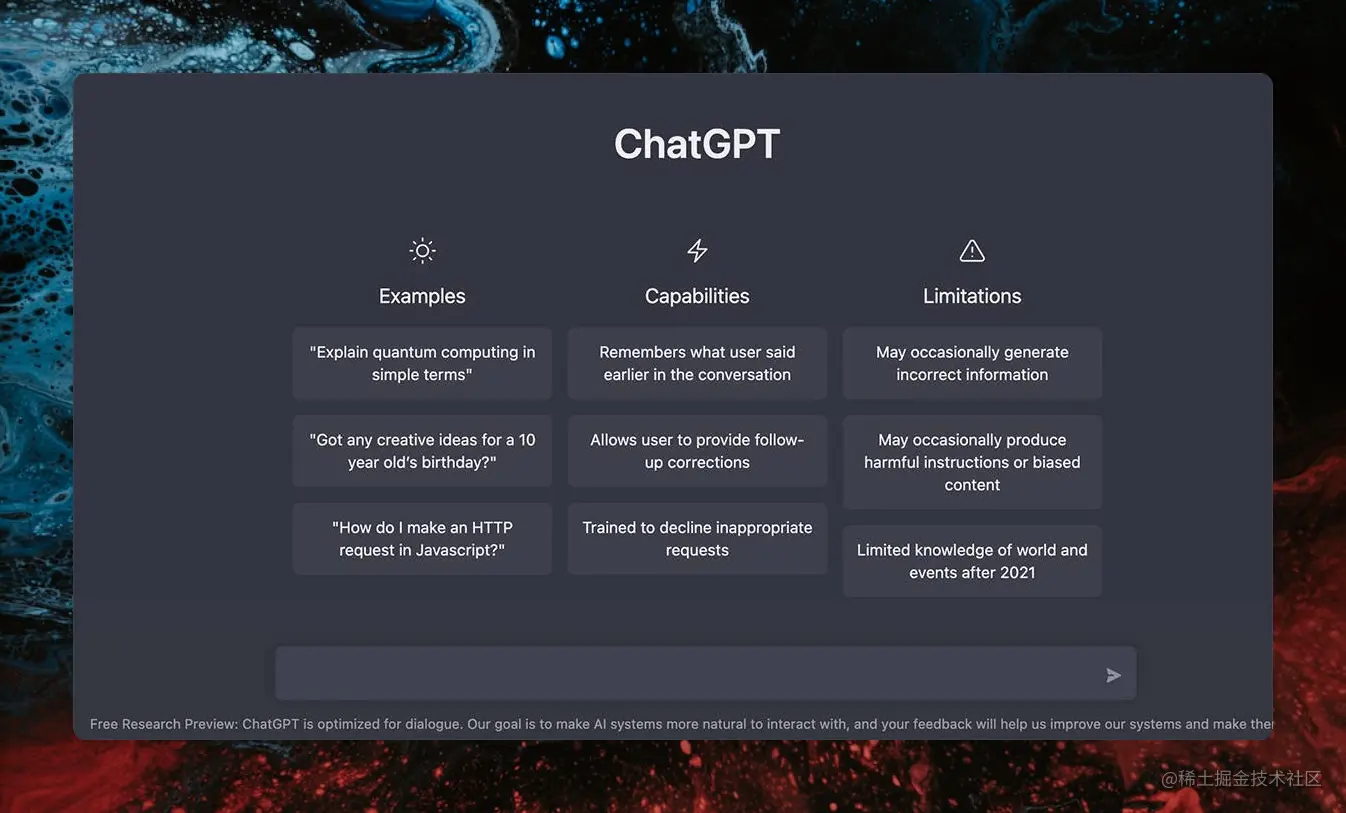 ChatGPT 诞生于 2022 年接近尾声的时候,并且在短短一周内便得到了超过百万人的使用。它不仅在各种文章中得到了广泛的提及,还有许多基于它的开源项目不断涌现。尽管它的应用领域非常广泛,但对于开发者来说,它绝对是神器中的神器。无论在工作中遇到什么样的问题,它都能提供有效的解决方案。强烈推荐大家一试!