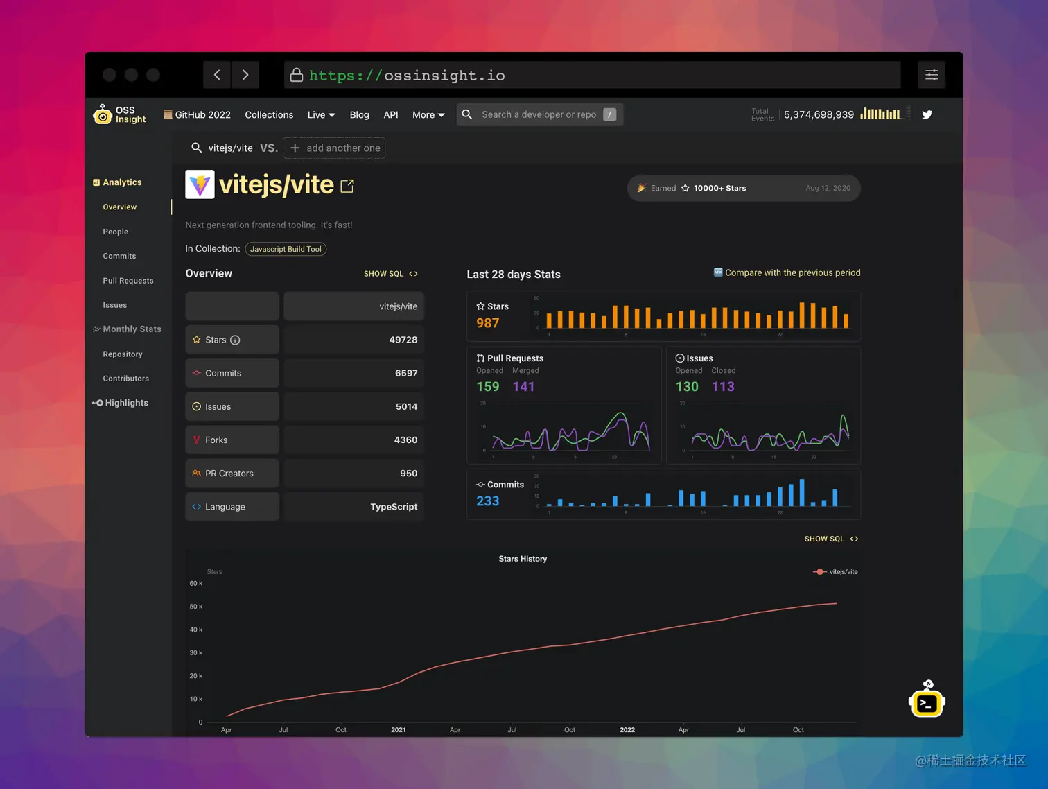 OssInsight.io 是一个提供更为强大功能的 Github Repo 发现、搜索、分析在线平台。它可以被认为是 Github Trending 和 Github Insights 的更优选择。对于开源用户来说,这样一个平台简直是不可多得的福音。