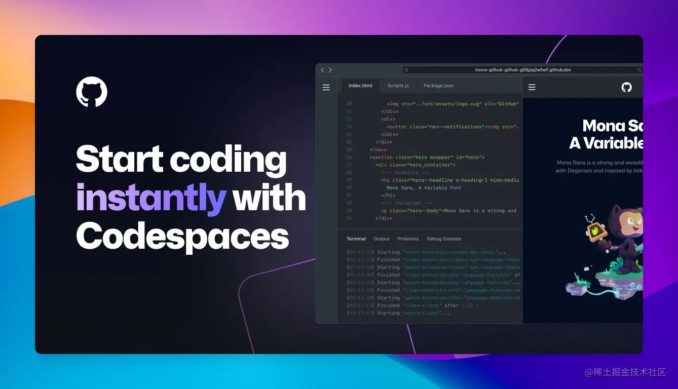 Github 推出了 Codespace 功能,它可以让用户直接在网页或本地 VSCode 中打开一个 Github 仓库,并提供底层资源来运行代码。它能自动识别代码仓库的语言和框架,并自动配置开发环境,准备好工具。它甚至能识别和预装专业的建站工具,比如 Hugo。它会监听端口,进行端口转发,并提供预览地址。
