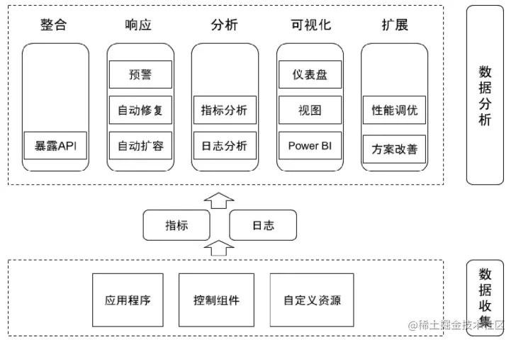 因此,通过一个全面的监控系统来解决集群中数据的收集、分析和执行功能,能够极大地提高应用程序和服务的可用性和性能。一般来说,监控系统的数据分为两大类:指标(Metrics)和日志(Logs)。