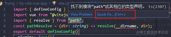 指定解析路径使用的 path module 需要先安装nodejs的类型声明 @types/node