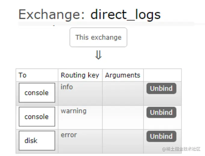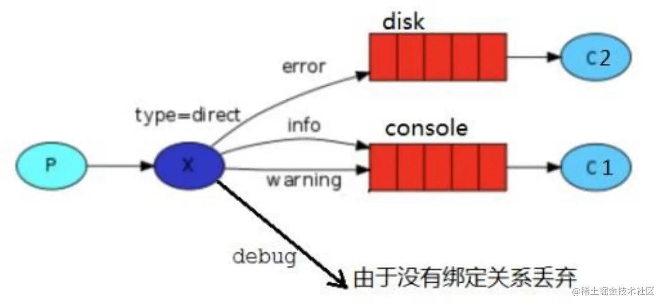 广播,在这里我们将使用 direct 这种类型来进行替换,这种类型的工作方式是,消息只去到它绑定的