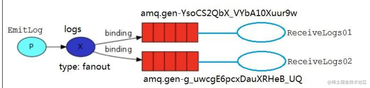 Logs 和临时队列的绑定关系如下图