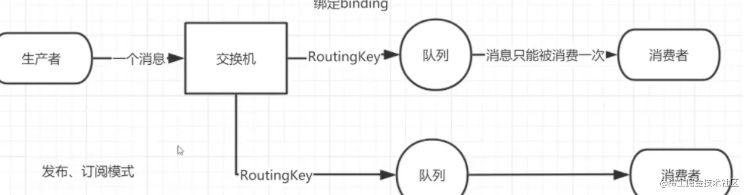 队列只对它绑定的交换机的消息感兴趣。绑定用参数:routingKey 来表示也可称该参数为 binding key,