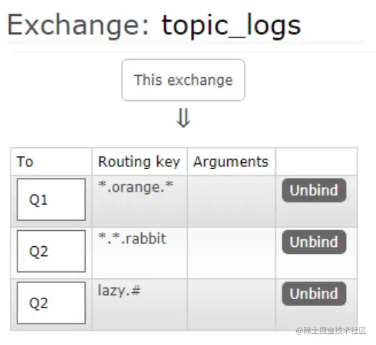 创建绑定我们用代码:channel.queueBind(queueName, EXCHANGE_NAME, "routingKey");绑定之后的