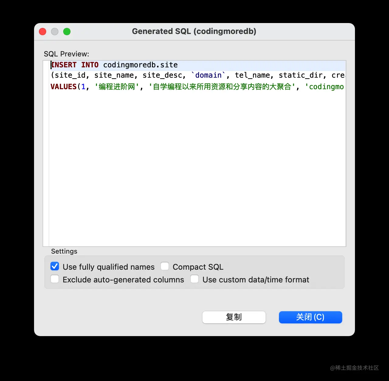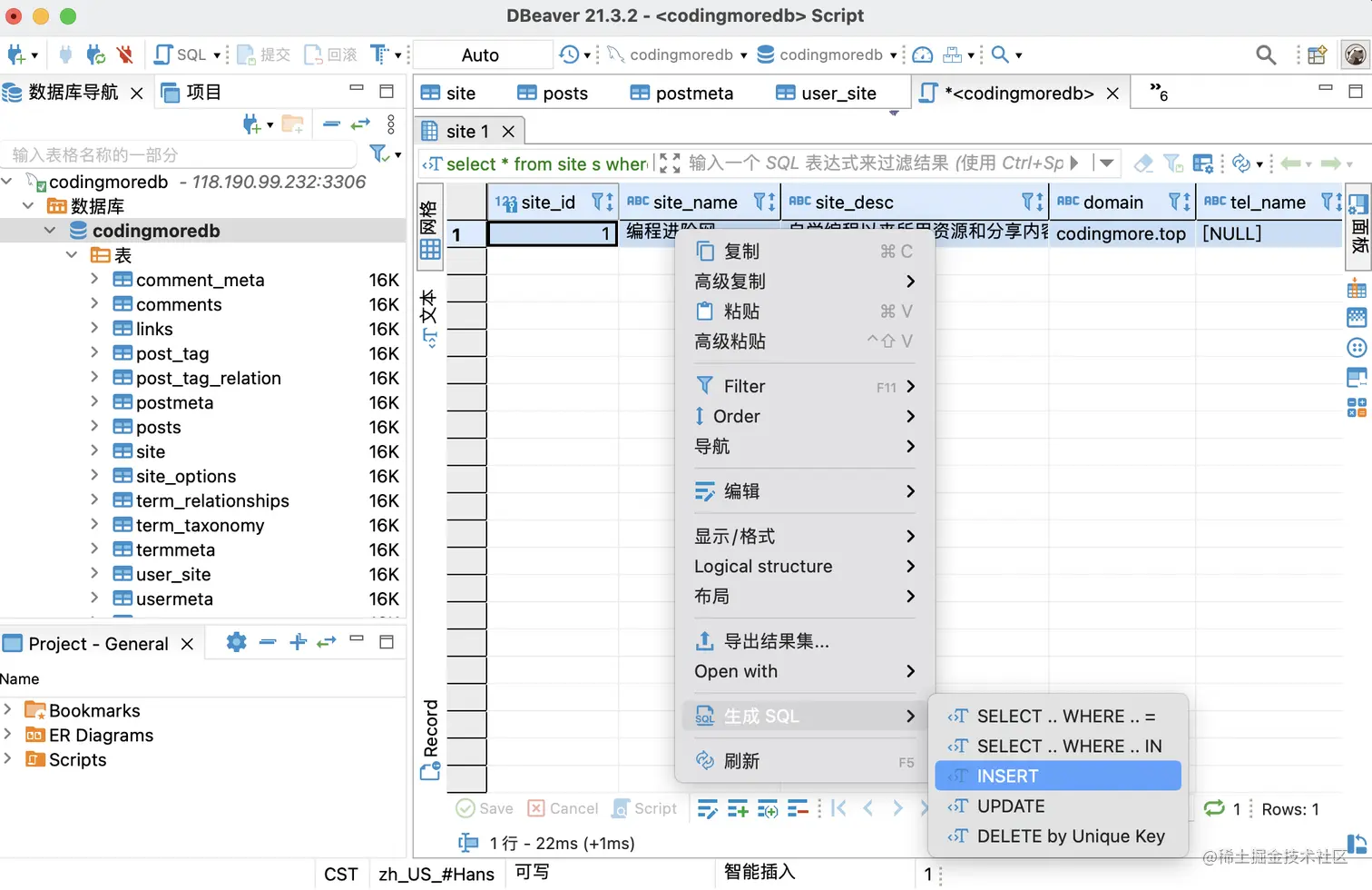 DBeaver 有一个很亮眼的操作就是,可以直接选中一条结果集,然后右键生成 SQL。