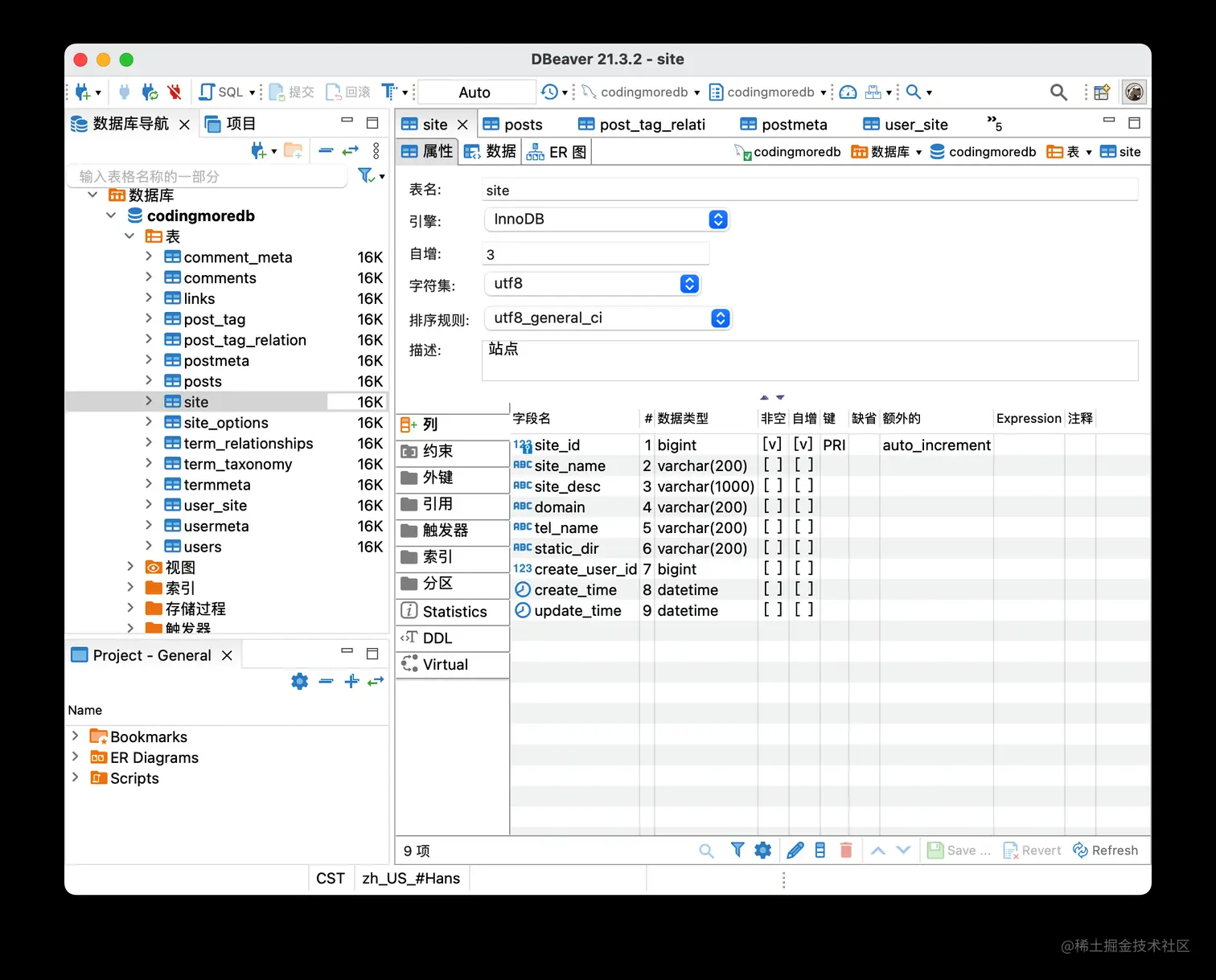 点击「DDL(Data Definition Language,数据定义语言)」可以看到详细的建表语句。