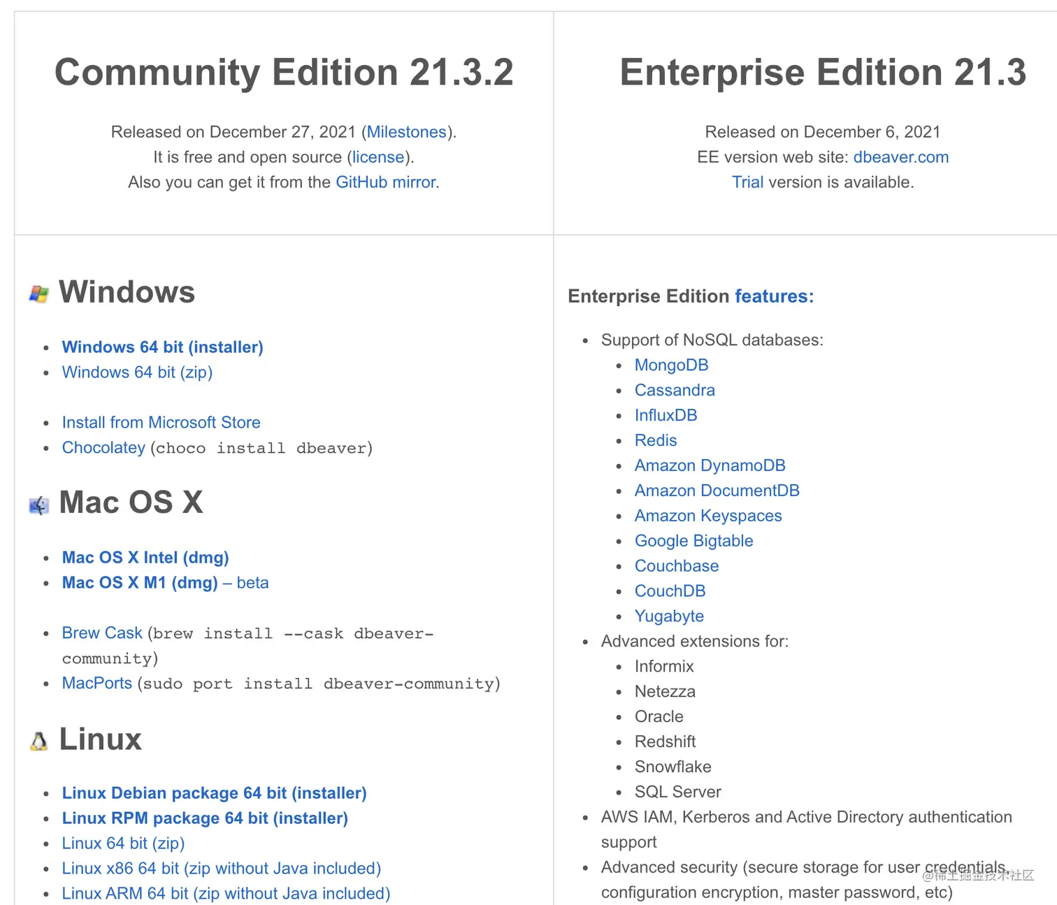 可以通过 DBeaver 官方下载安装包,也可以通过 GitHub 下载 release 版本。