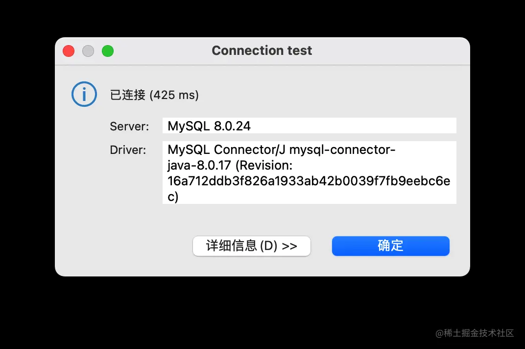 如果你前面按照我说的配置了阿里云的 Maven 镜像,程序就不一样了,点了「测试链接」,瞬间会弹出「连接已成功」的提示框。