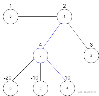 输入: vals = [1,2,3,4,10,-10,-20], edges = [[0,1],[1,2],[1,3],[3,4],[3,5],[3,6]], k = 2