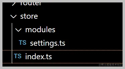 我们这里简单以一个settings的配置信息进行介绍,其中index.ts是一个统一的创建pinia的对象并挂接到全局App上的。
