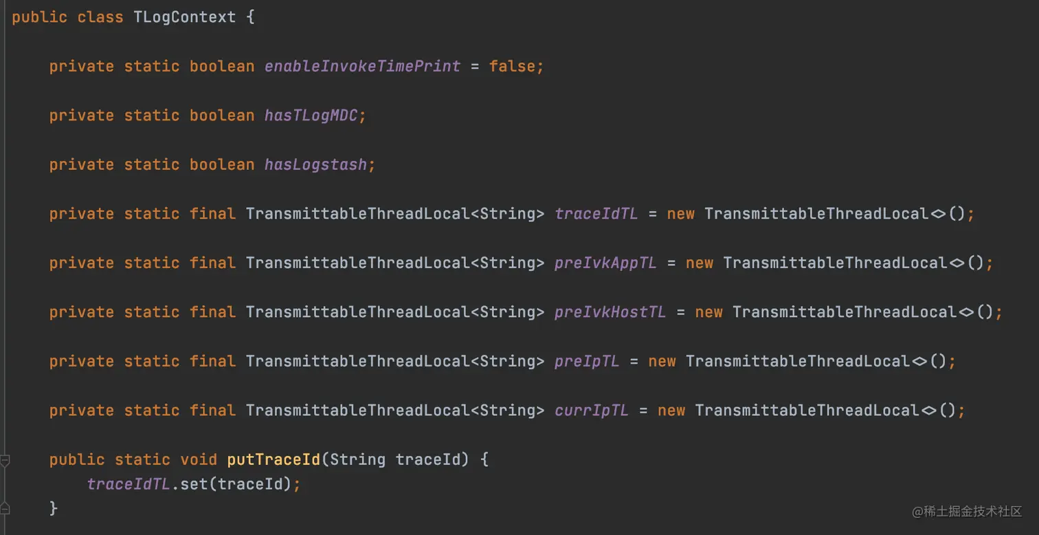 TLogContext是TLog是一个核心的组件,这个组件内部是使用了TransmittableThreadLocal来传递traceId、preApp等信息。