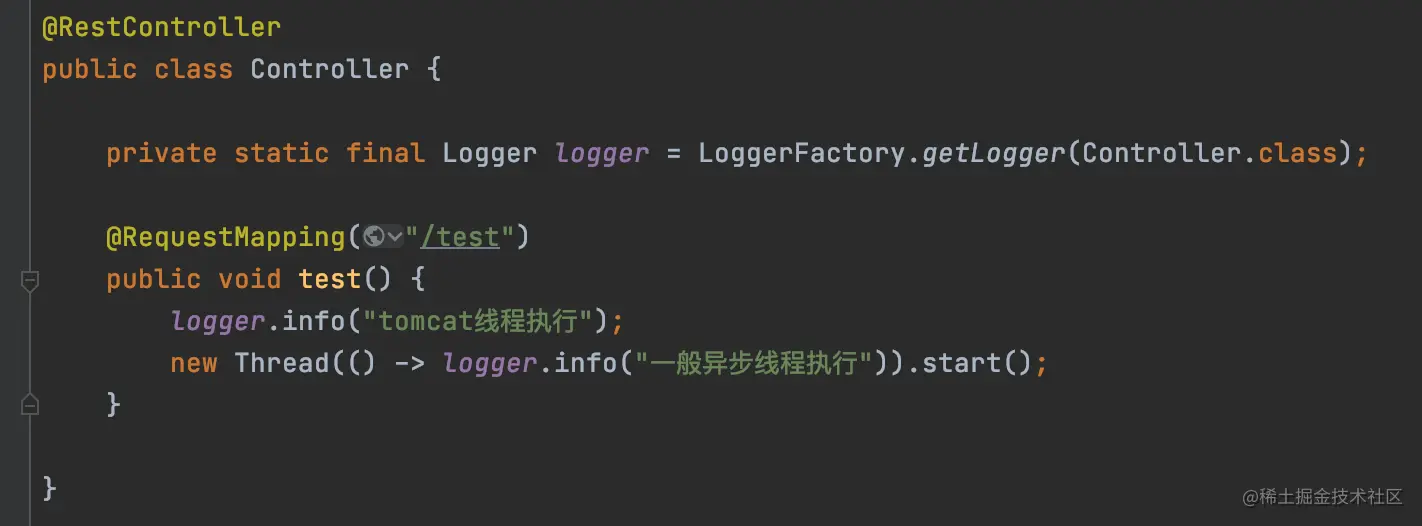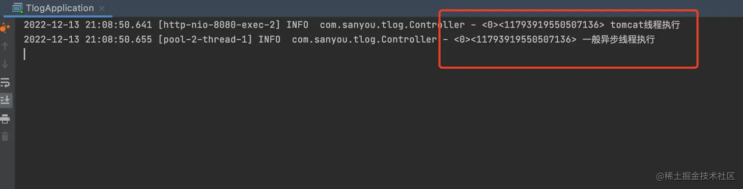 所谓的一般异步线程就是指直接通过new Thread的方法来创建异步线程,然后来执行,这种方式TLog是天然支持携带traceId的,如图。
