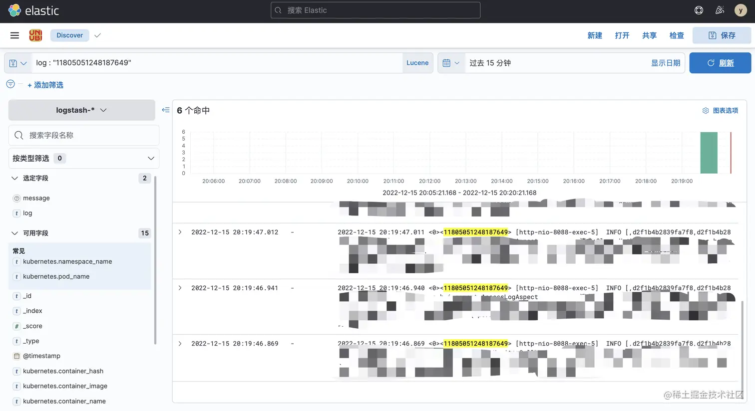 从这可以看出,11794076298070144 就是本次日志输出的时候生成的一个请求的traceId,在排查日志的时候就可以通过这个traceId去搜索出整个请求的链路日志。