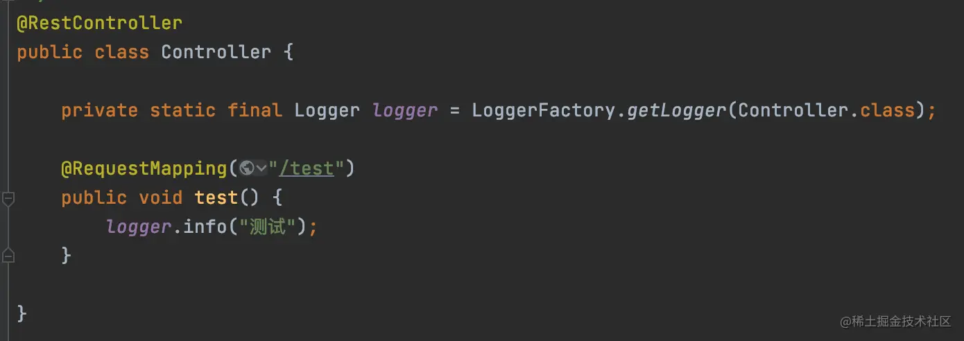 这里是通过slf4j的LoggerFactory获取Logger对象,因为logback适配了slf4j,最终会通过logback来输出日志。