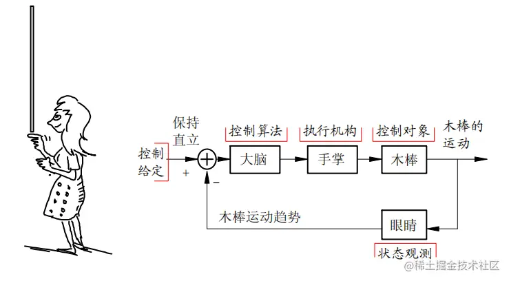 小时候都玩过上图游戏吧:木杆立在手指上,尽量保持木杆直立不倒。