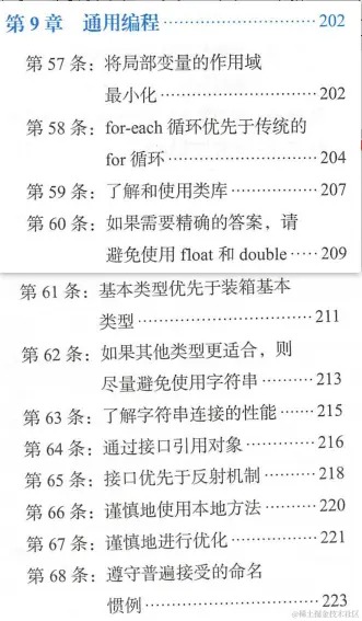 书本目录一共有十二个章节,细分九十条规则【+jcc4261获取】,从Java5.0到9.0的技术要点都有涵盖。
