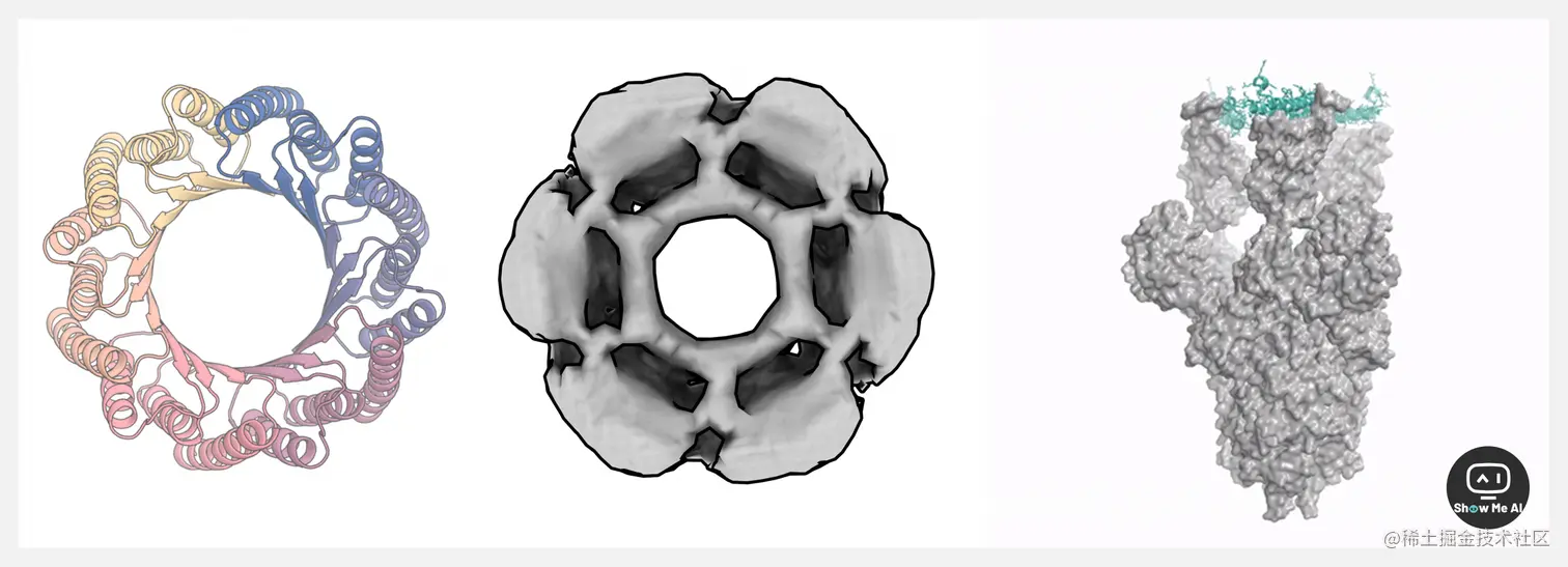 波士顿的蛋白质设计公司 Generate Biomedicines,也发布了类似成果——Chroma 蛋白质设计程序。Chroma 从数据库中学习蛋白质与复合物的3D结构和氨基酸序列模式,进而在没有任何额外提示的情况下随机合成符合这些原理的新蛋白质分子,同时将它们以新颖的方式组合起来。
