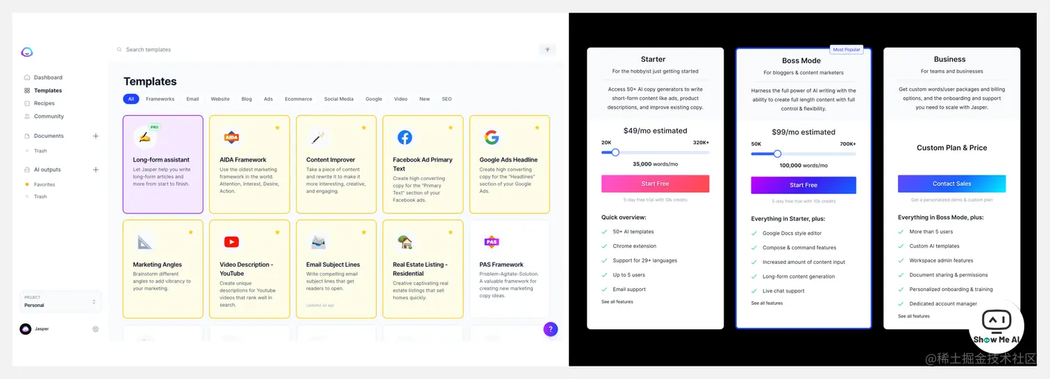 Jasper 不提供免费试用,个人模式每月 29 美元,Boss 模式每月 99 美元。尽管价格不菲,但由于其具有竞争力的功能、干净的用户界面和高质量的输出潜力,对于那些希望进行大量写作和文案而无需聘请昂贵的外部帮助的人来说,它仍然具有很高的价值。