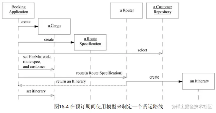 公司的活动都被放到作业层中,最明显的作业对象是 Cargo ,它是公司大部分日常活动的焦点。Route Specification 是 Cargo 不可或缺的一部分,它规定了运输需求,而 Itinerary 是运输计划,这些对象都以 Cargo 为聚合根。