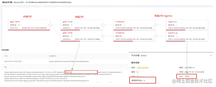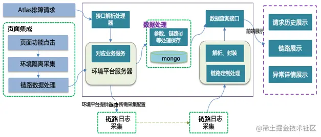 基于全链路监控系统打通了环境平台内部的链路,实现了在开发和测试阶段可以一键定位环境和调用链路问题的能力,极大减少了研发和测试的排查时间。一键验证功能目前已覆盖了异步任务、RocketMQ 和 API 接口的问题排查。通过下图所示的排查链路,可快速定位异常服务和问题原因。