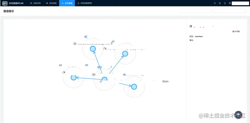 系统依赖日趋复杂,研发需要了解自己所开发接口的依赖与被依赖关系,才能保证版本迭代时上下游不受影响。测试需要了解自己所测接口的上下游依赖关系,才能保证 case 覆盖率。为了让这种依赖关系展示的全面、具体,我们使用全链路监控系统自动获取了接口级、字段级的依赖关系,并借助 G6 以图谱的方式展示在 Atlas 上。