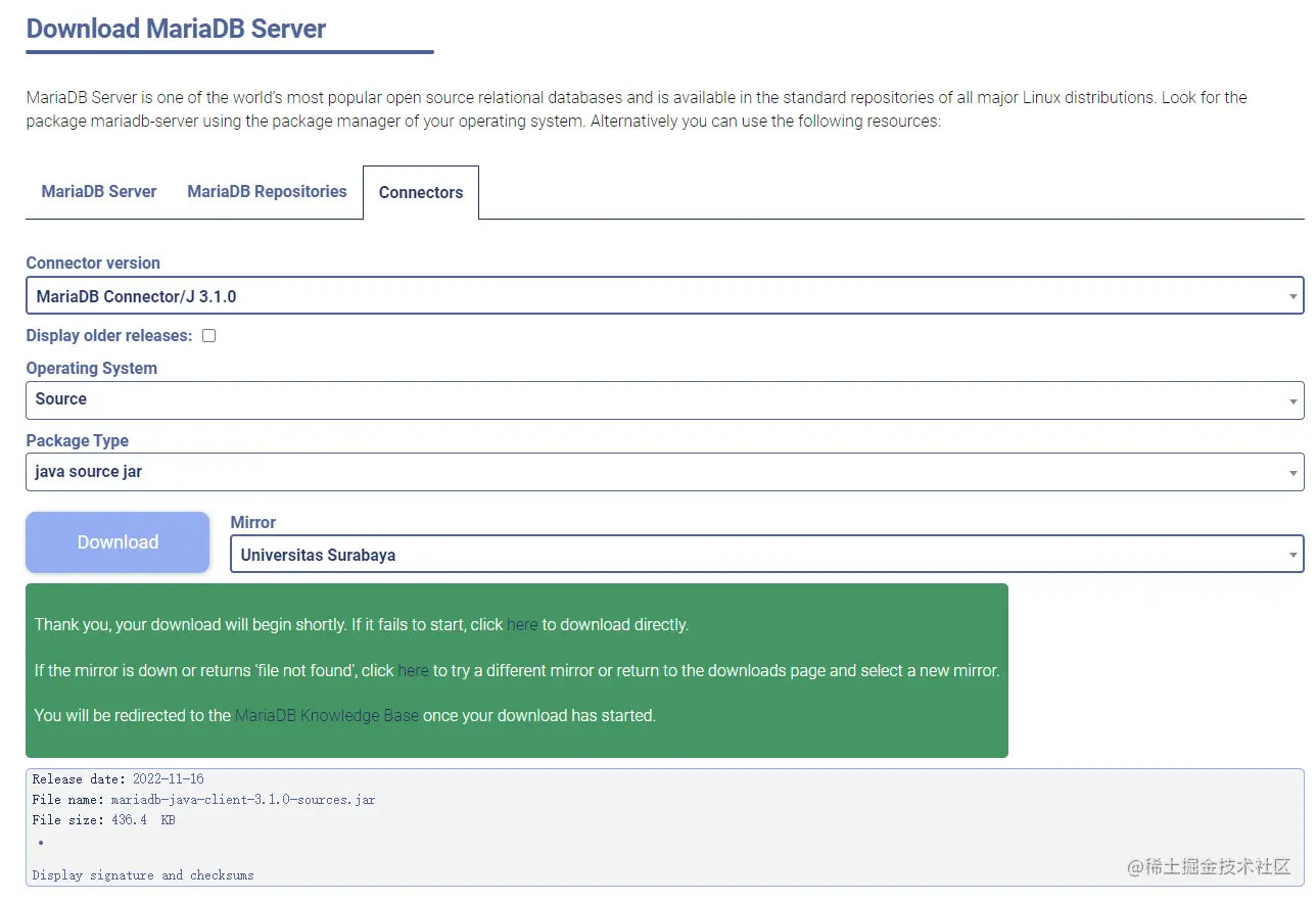 mariadb.com/kb/en/insta… 点击 Download MariaDB Connector/J 按钮跳转